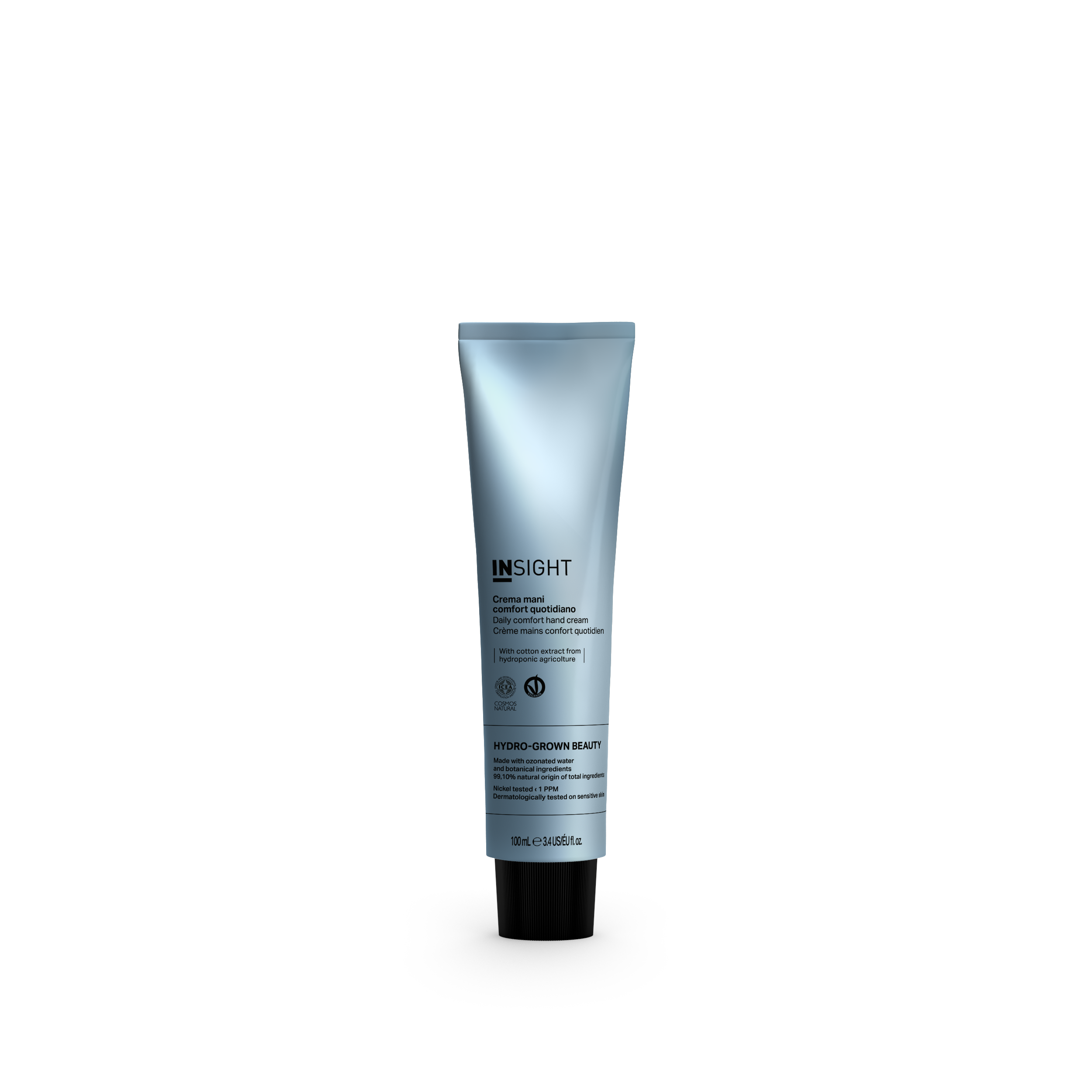 • Estratto di cotone da agricoltura idroponica: dalle proprietà lenitive e antiossidanti, contribuisce a mantenere la pelle morbida e protetta.